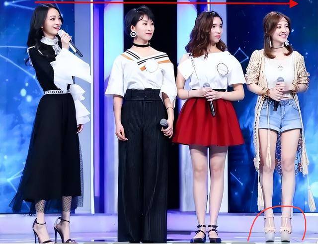 即使这样,在和其他艺人同框时,还是有不小的视觉差距,在以前直播时还踩过10多厘米的高跟鞋,一直引发了不少的质疑。