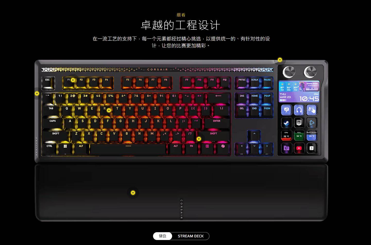 不过需要注意的是,这款键盘并没有配备一个集成的控制软件,玩家仍然需要安装 CORSAIR WEB HUB 以及 Stream Deck 两款驱动程序才能分别控制键盘、直播台。