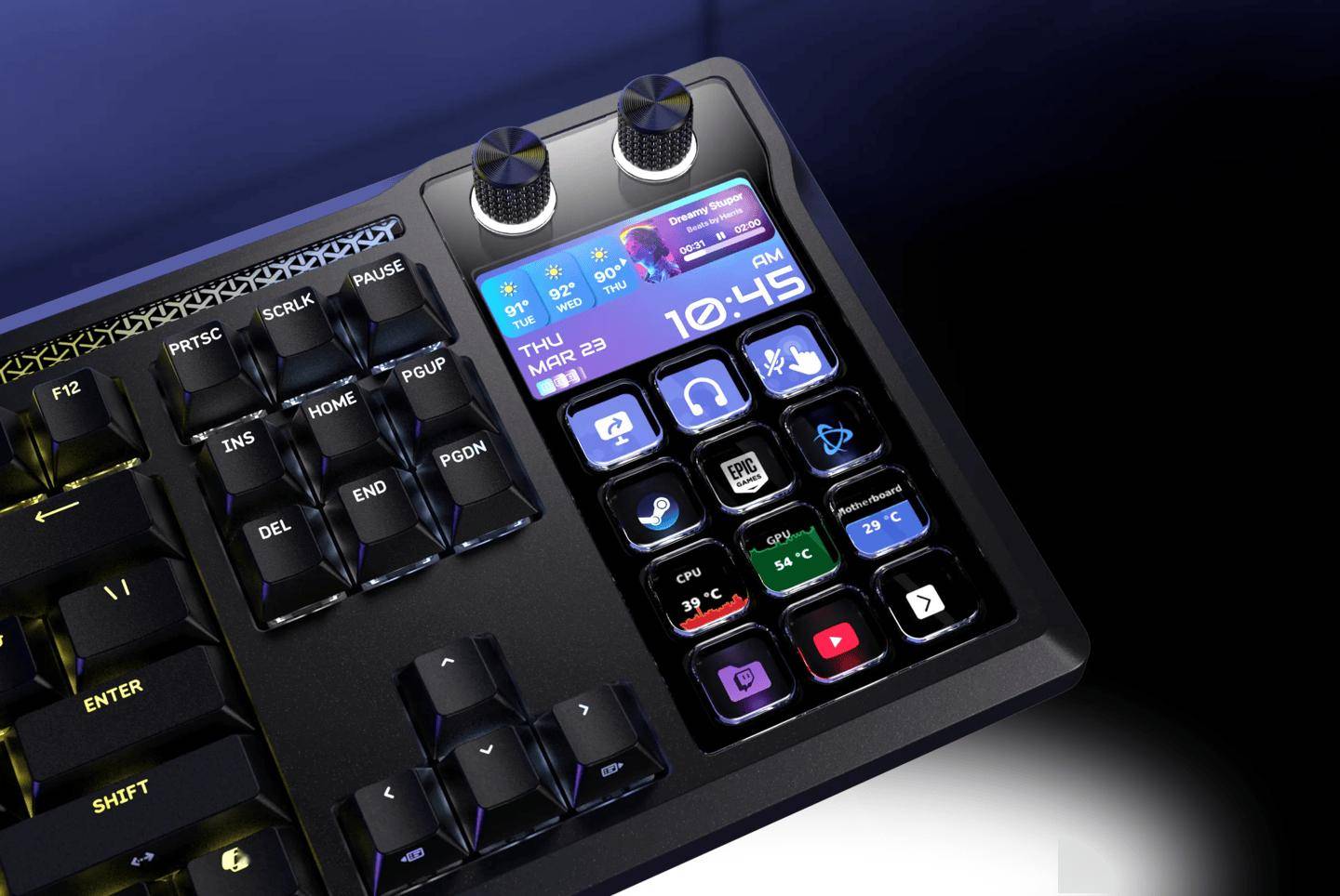 游戏直播,电竞直播,手游直播,lol直播,英雄联盟直播,dnf直播,cf直播,绝地求生直播,王者荣耀直播,游戏直播,赛事直播,美女直播,户外直播,二次元直播,斗鱼直播,英雄联盟,绝地求生,和平精英据介绍,这款键盘采用有线 英寸 IPS 屏幕,分辨率为 720*1080,带有两个旋钮、12 个带屏按键,可以让用户在不暂停游戏的情况下操控 Spotify、Twitch、Vtube Studio、OBS 等主播常用软件。