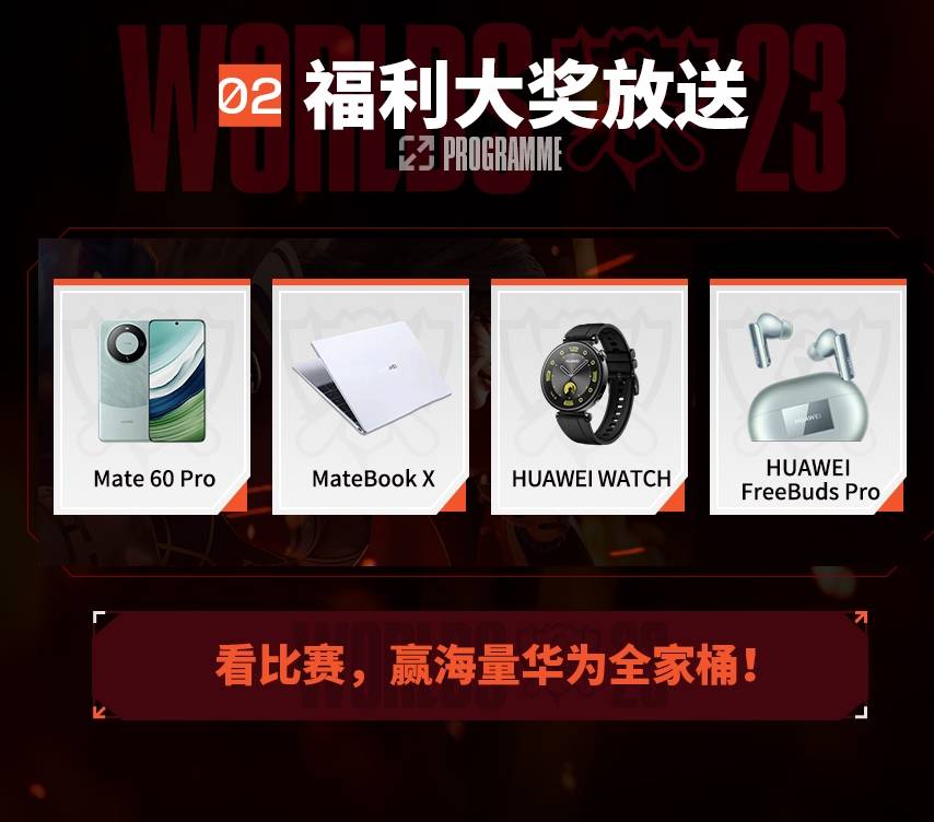 除了以上三大观赛体验的升级外,这一次全球总决赛期间只要在斗鱼直播观赛的网友们还有机会获得Mate 60 Pro、MateBook X、HUAWEIWATCH等观赛福利。不仅能让网友们在看比赛的过程中玩得过瘾,还能有机会白嫖各种福利。