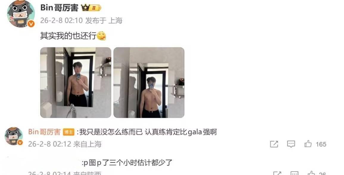 - Bin输比赛却称世界第一!深夜晒出腹肌照